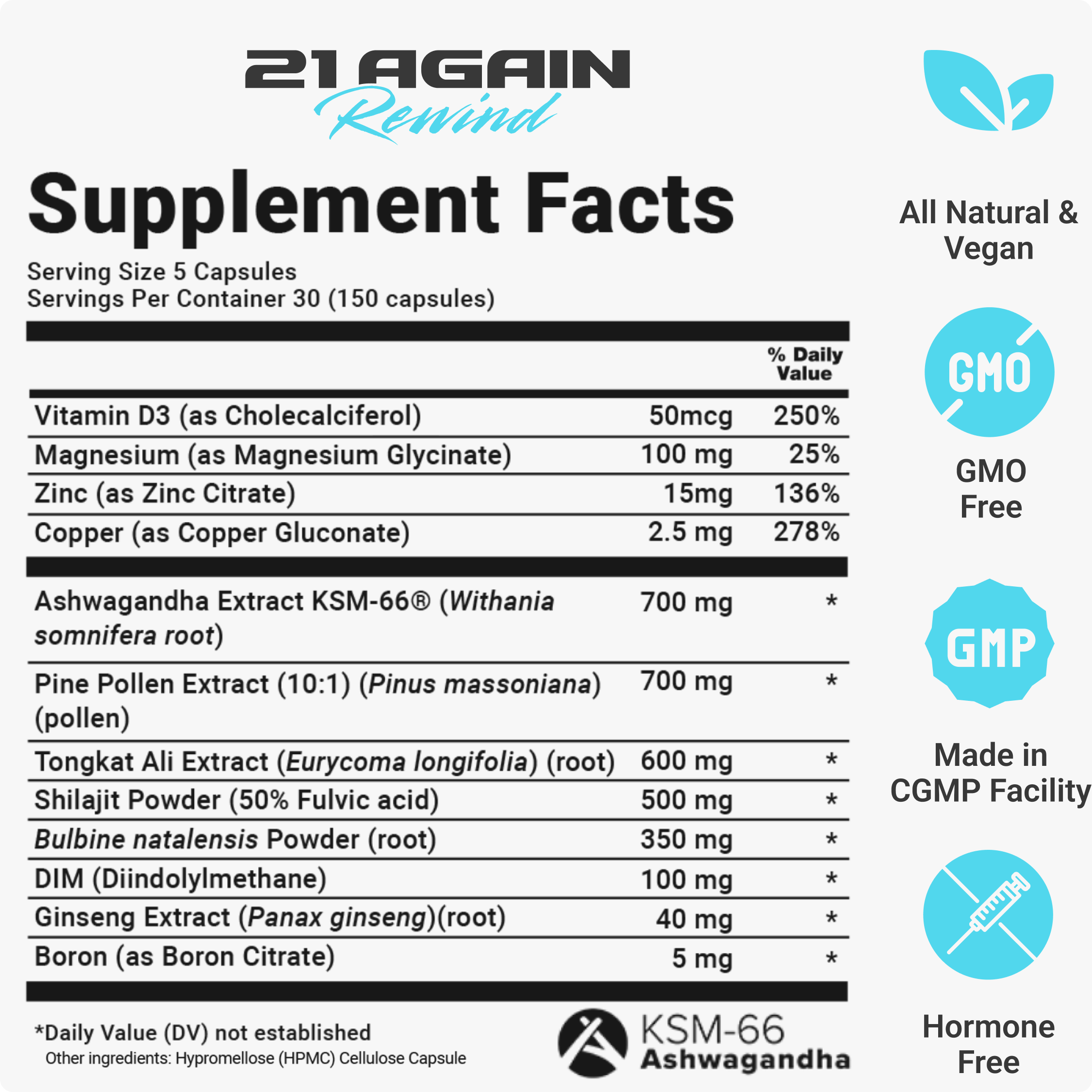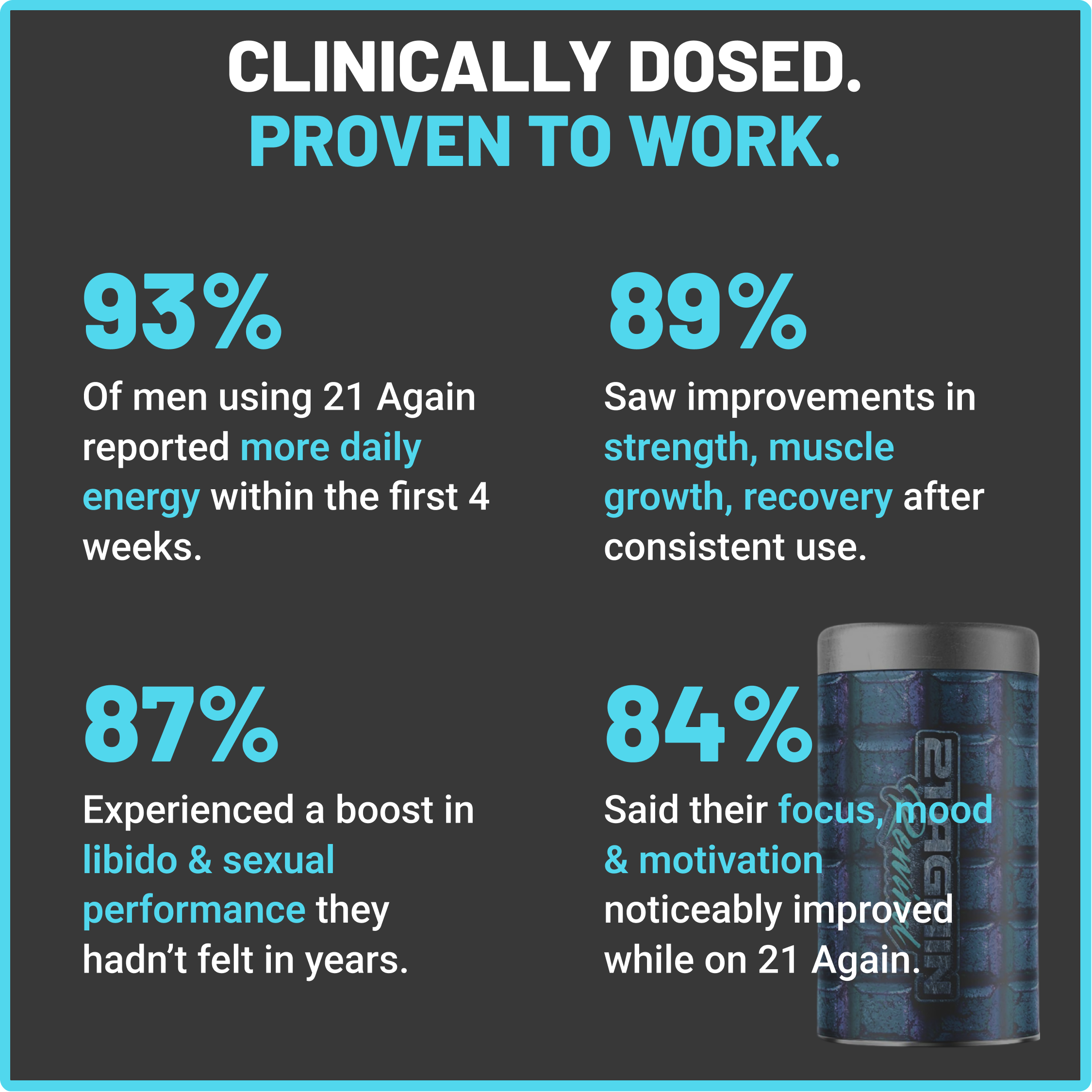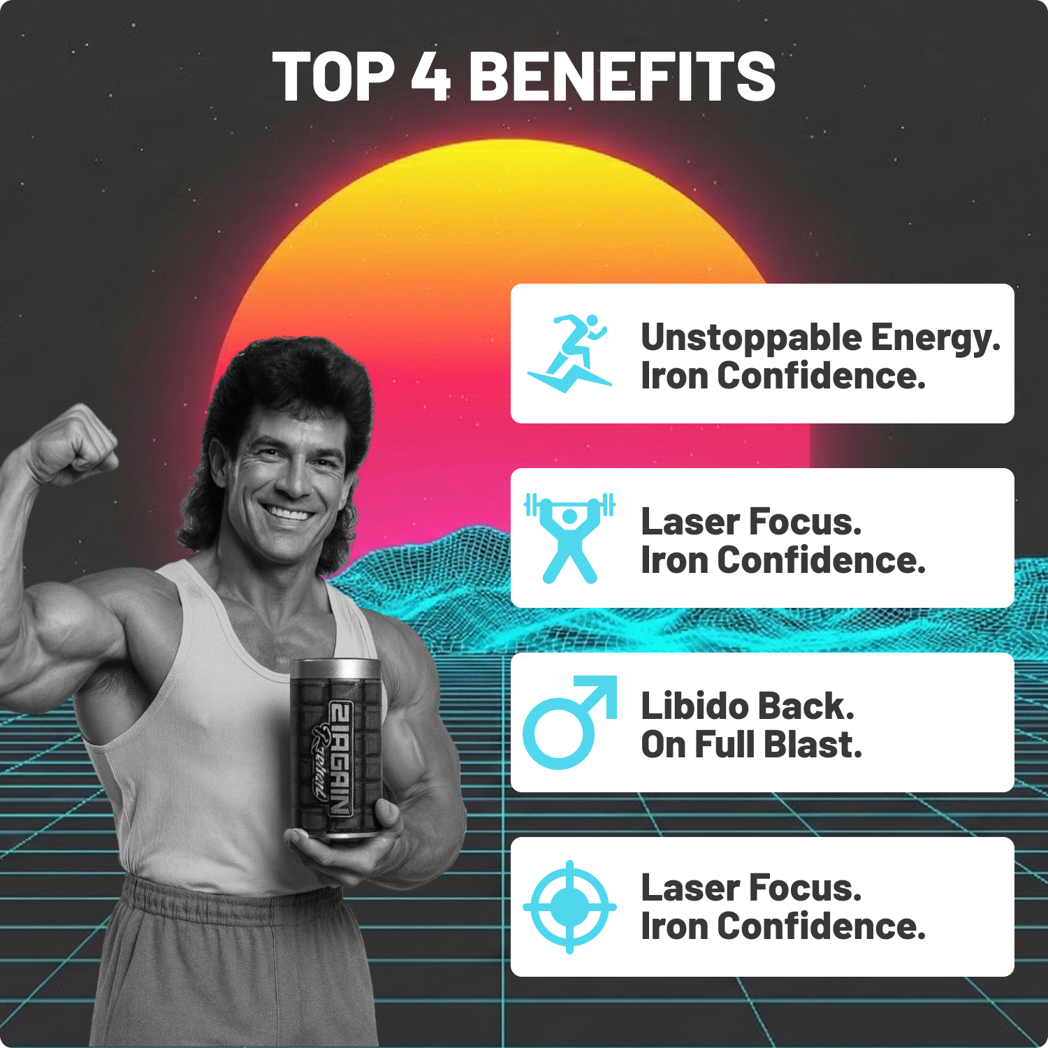 You feel: peak strength, stamina, libido, and clarity — back like you are 21 Again